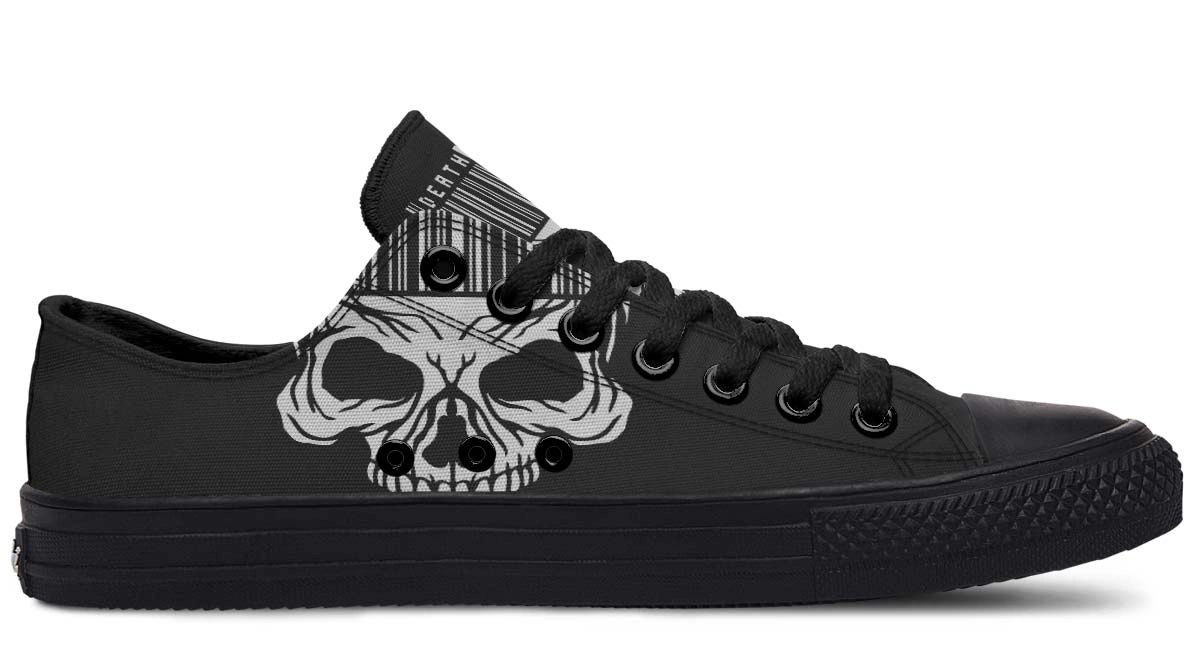Skull Barcode Black Low-Top Sneakers – Edgy Streetwear Shoes